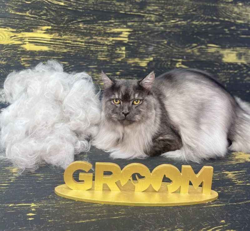 Тем не менее мастера рекомендуют хозяевам беречь шерсть кота и не остригать слишком коротко. Если у вас нет никакой возможности самостоятельно ухаживать за своим мейн-куном, его строптивый характер не позволяет вам осуществлять все необходимые манипуляции, то приносите своего прекрасного роскошного котика на экспресс-линьку в Groom раз в два месяца и вы забудете о проблемах в уходе за котом.